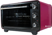 Электрическая (ростерная) духовка MO-0036R объем камеры 36 л; мощность 1420 Вт; двойная термоизоляция; широкое термостойкое стекло; эмаль; регулировка температуры: 40-320C; 3 режима нагрева; 2 противня: прямоугольный и круглый; решетка-гриль; вес нетто/брутто (кг): 7/8,6; размер упаковки (ШхГхВ), см: 53х44х36; цвет: красно-бордовый