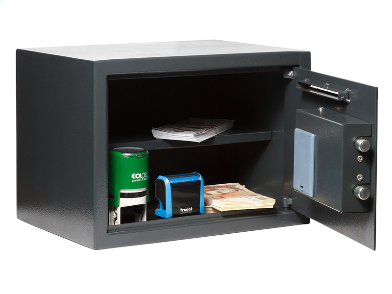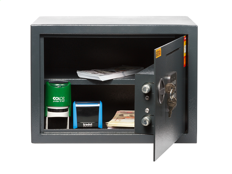 Сейфы ТМ GUTEO предназначены для хранения документов (формат А4), денег (есть специальная прорезь на двери, можно забросить деньги не открывая дверцу) или небольшого оружия (пистолета).В данной модели имеется одна полочка. Сейф можно установить в стену или поставить в обычный шкафчик. Кроме этого, сейфы сделаны из прочного металла и могут крепиться к стене или к полу, что значительно повышает уровень безопасности ваших ценностей