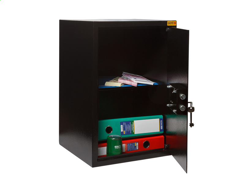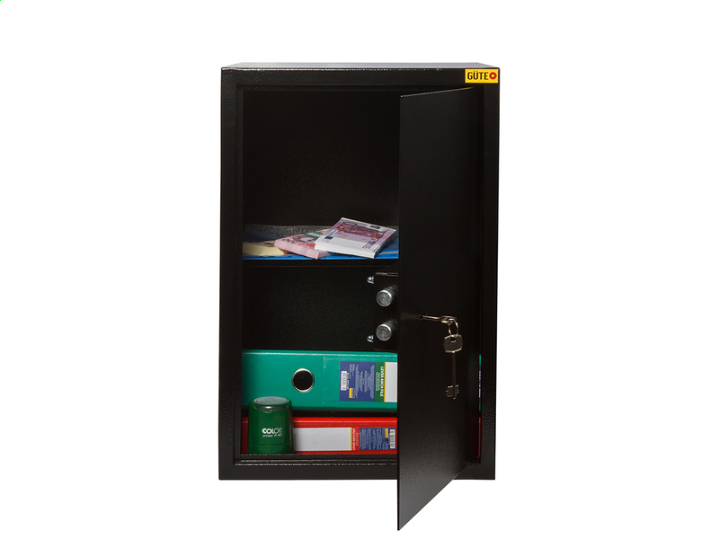 Сейфы ТМ GUTEO предназначены для хранения документов (помещается папка Корона), денег и других ценностей.Помещается так же ноутбук диагональю 15 дюймов. В этой модели предусмотрена съемная полочка. Может использоваться для хранения бухгалтерских документов в офисах.
